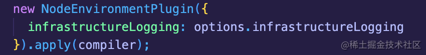 2、接着定义一个apply方法,并拿到实参compiler(上面也看到了,webpack内部调用插件的时候都会传入compiler实例)```