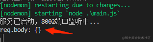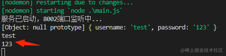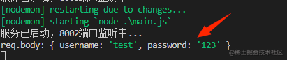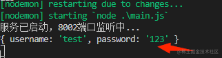 但是express中就是获取不到{"username":"test","password":"123"},控制台输出了一个空对象。
