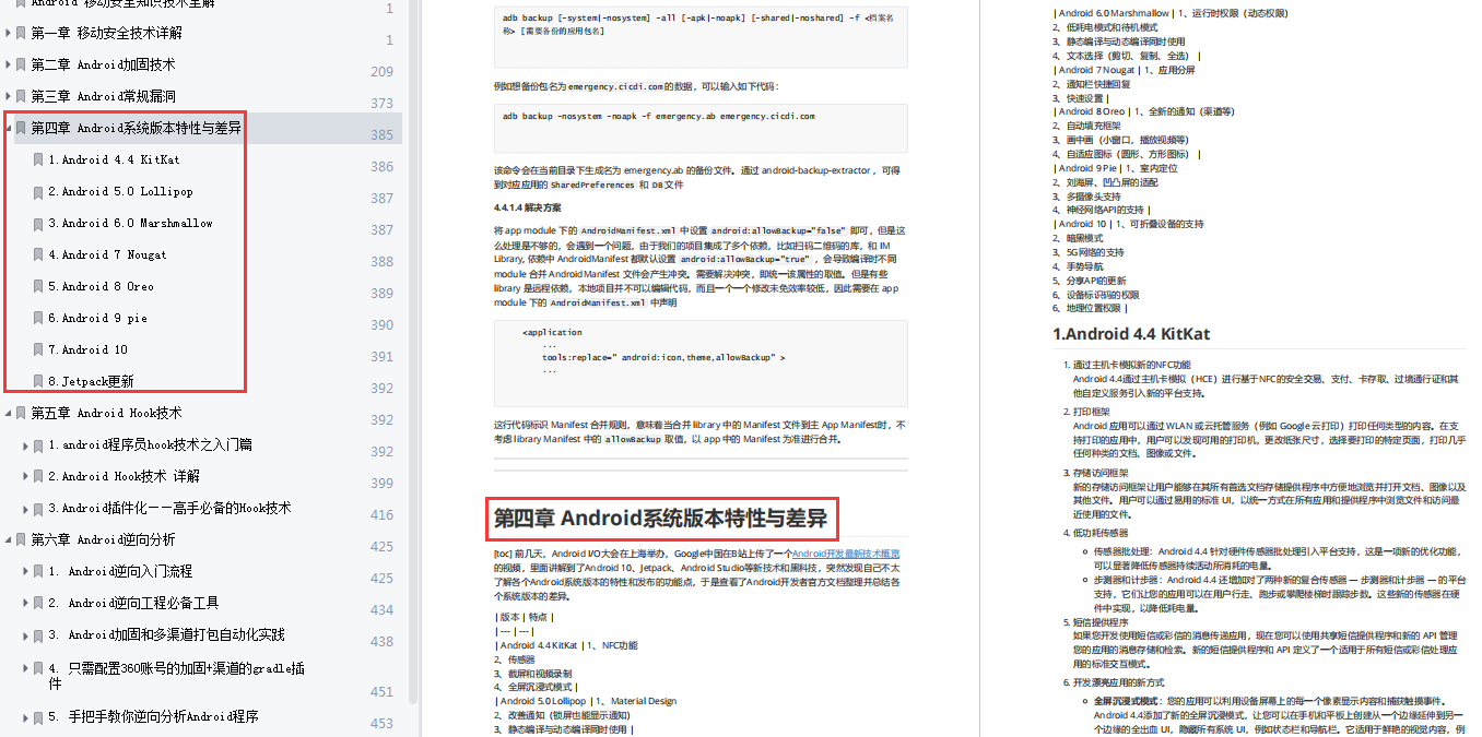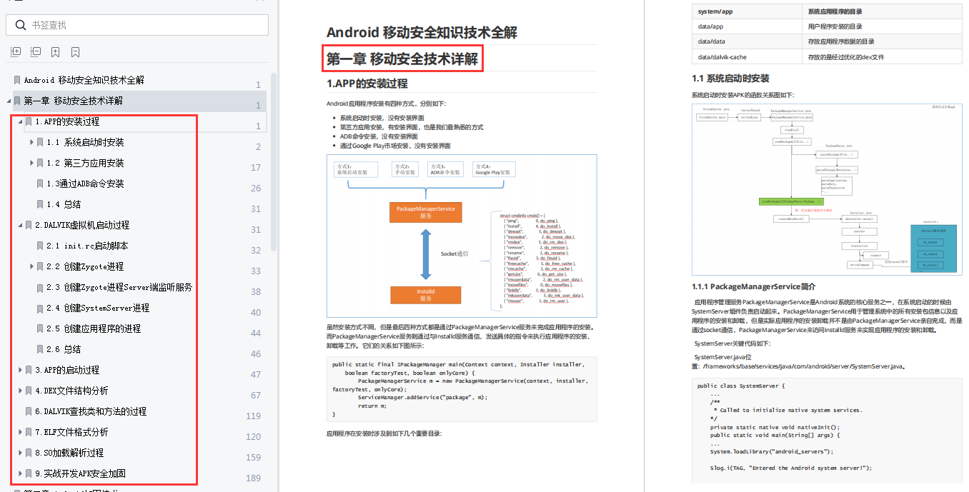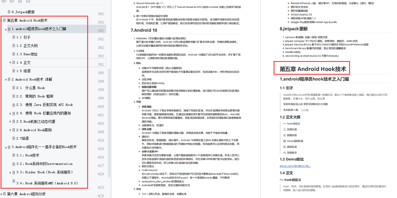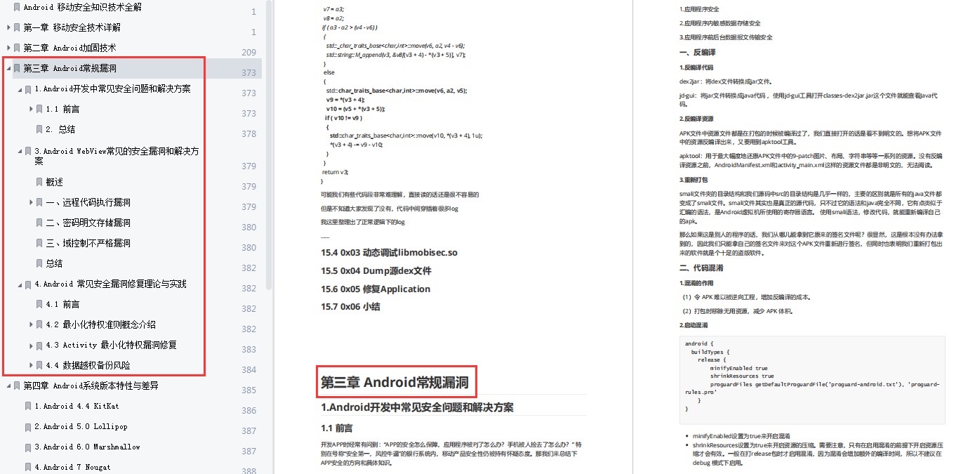 现在,我们回归正题,给大家分享这份阿里云团队全新开源的《Android 移动安全知识技术全解》,全面总结了 移动安全 企业级应用的解决方案,包括了基本概念、加固、常规漏洞、各系统版本特性、Hook技术和逆向分析等方面,更具深度、广度、实用性!希望可以为企业开发者和决策者提供基于 Android 移动安全的完整解决方案。