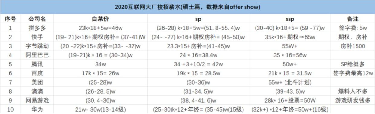 金三银四面试旺季就要来了,先来一幅校招大厂薪酬,看完可能会更有动力了。
