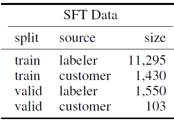先说下SFT指令集的构建,InstructGPT构建了训练12725+验证1653条prompt指令,由标注员的标注样本和用户在playground中和模型交互的指令共同构成,相比T0指令的多样性又有大幅提升。不过以下的指令数量包括了few-shot采样,也就是1个instruction采样不同的few-shot算多条指令。