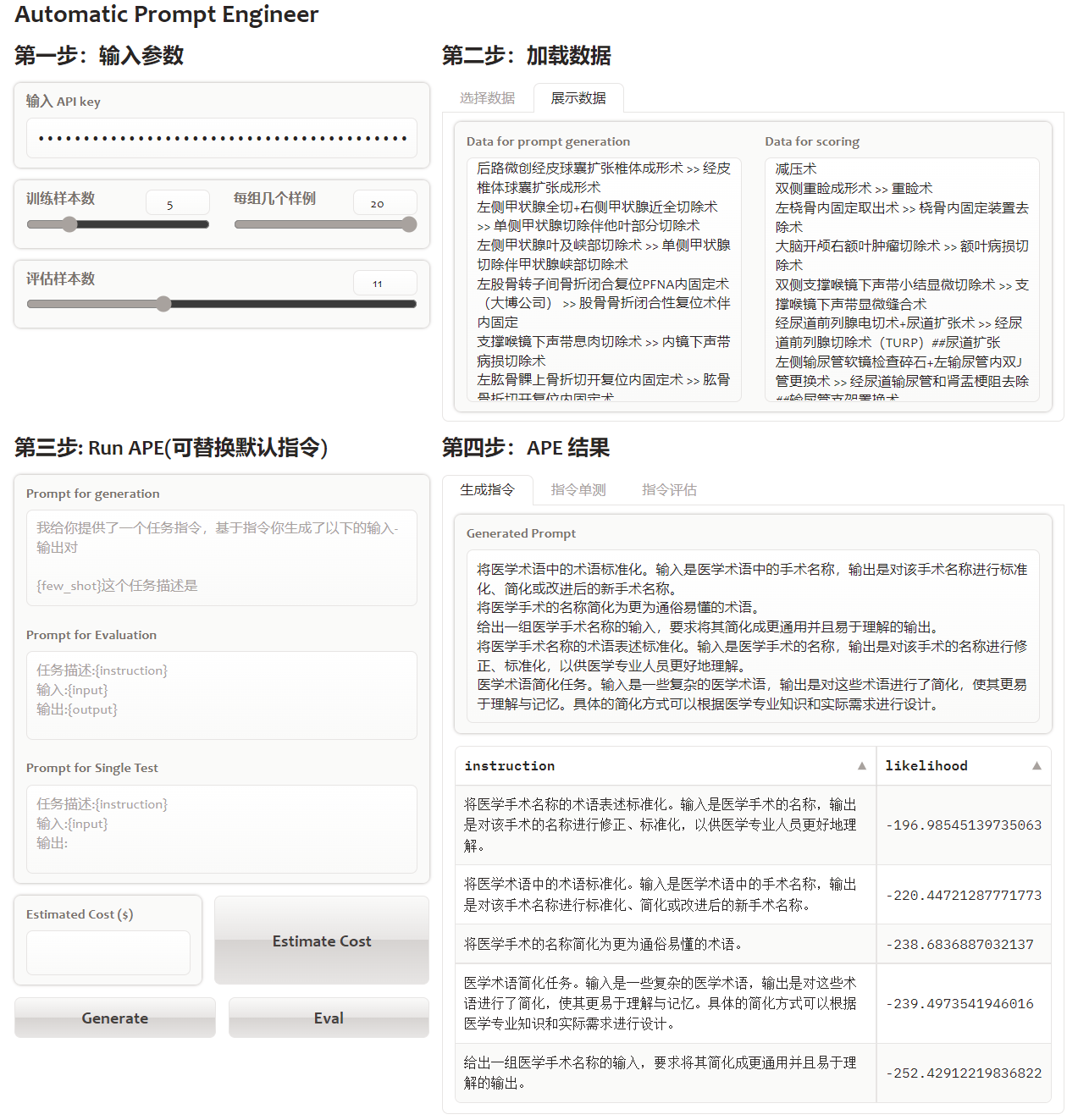 以医学术语标准化为例我简化了APE提供的gradio应用,效果如下