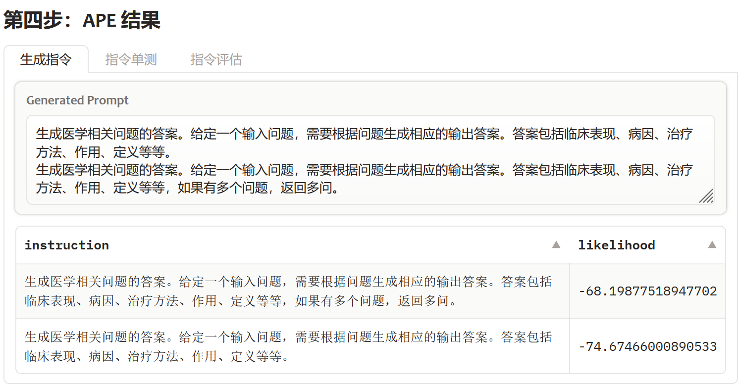 最初我对这种机器生成指令的方式是不太感冒的,但是在医学术语标准化这个任务上,我对比了APE得到的最优指令,和我人工写的指令,在单测时确实是模型指令,得到正确答案的概率更高。所以我大胆猜测,因为模型之间的一致性,所以合理使用模型生成的指令,能提供更精准的上下文任务描述,且理论上都应该不差于人类指令。