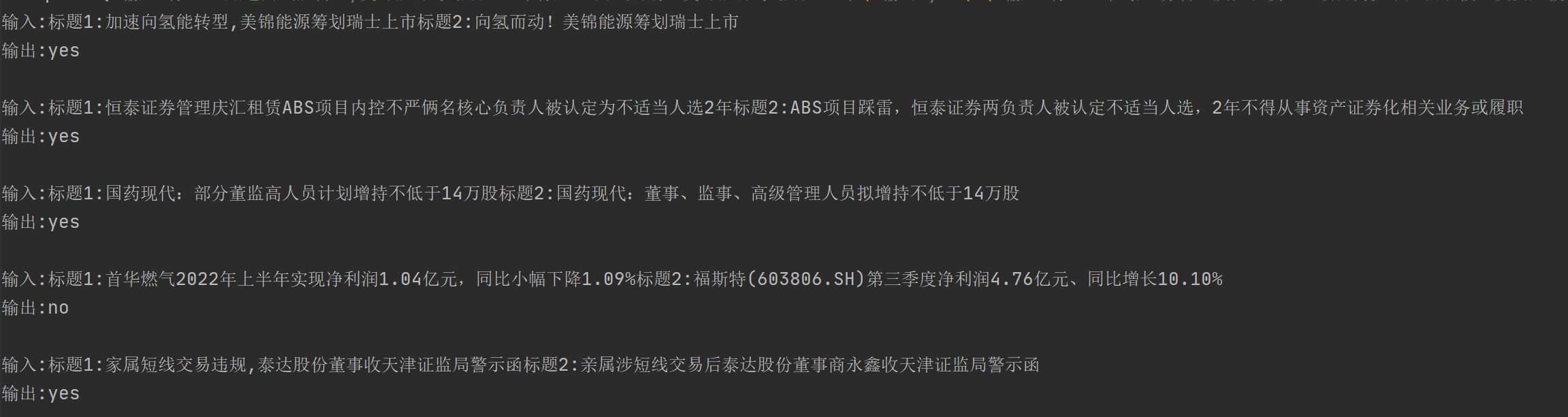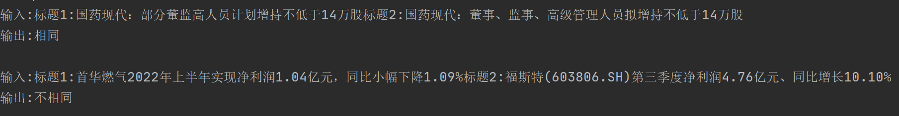 但是当我把样本中的输出改成符合任务语意的相同/不相同时,模型预测是:“判断两个新闻标题是否相同,如果相同输出"相同”,否则输出"不相同"