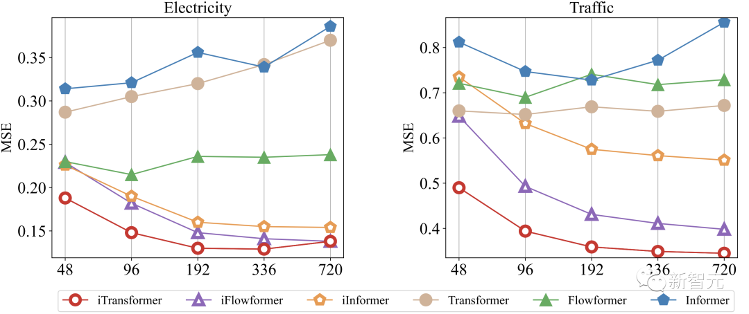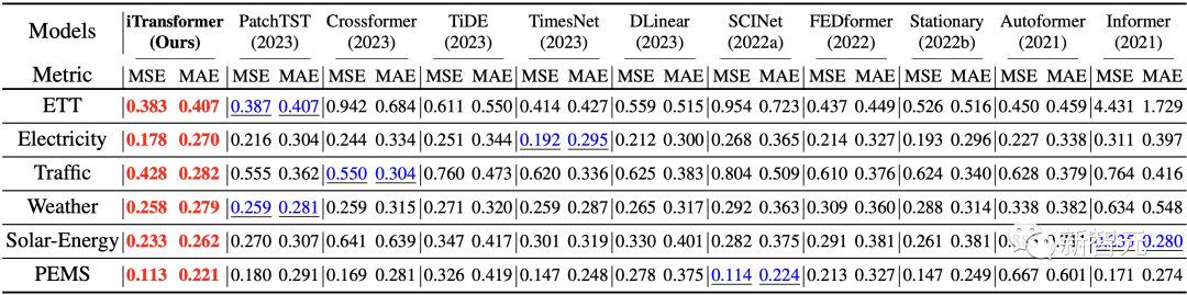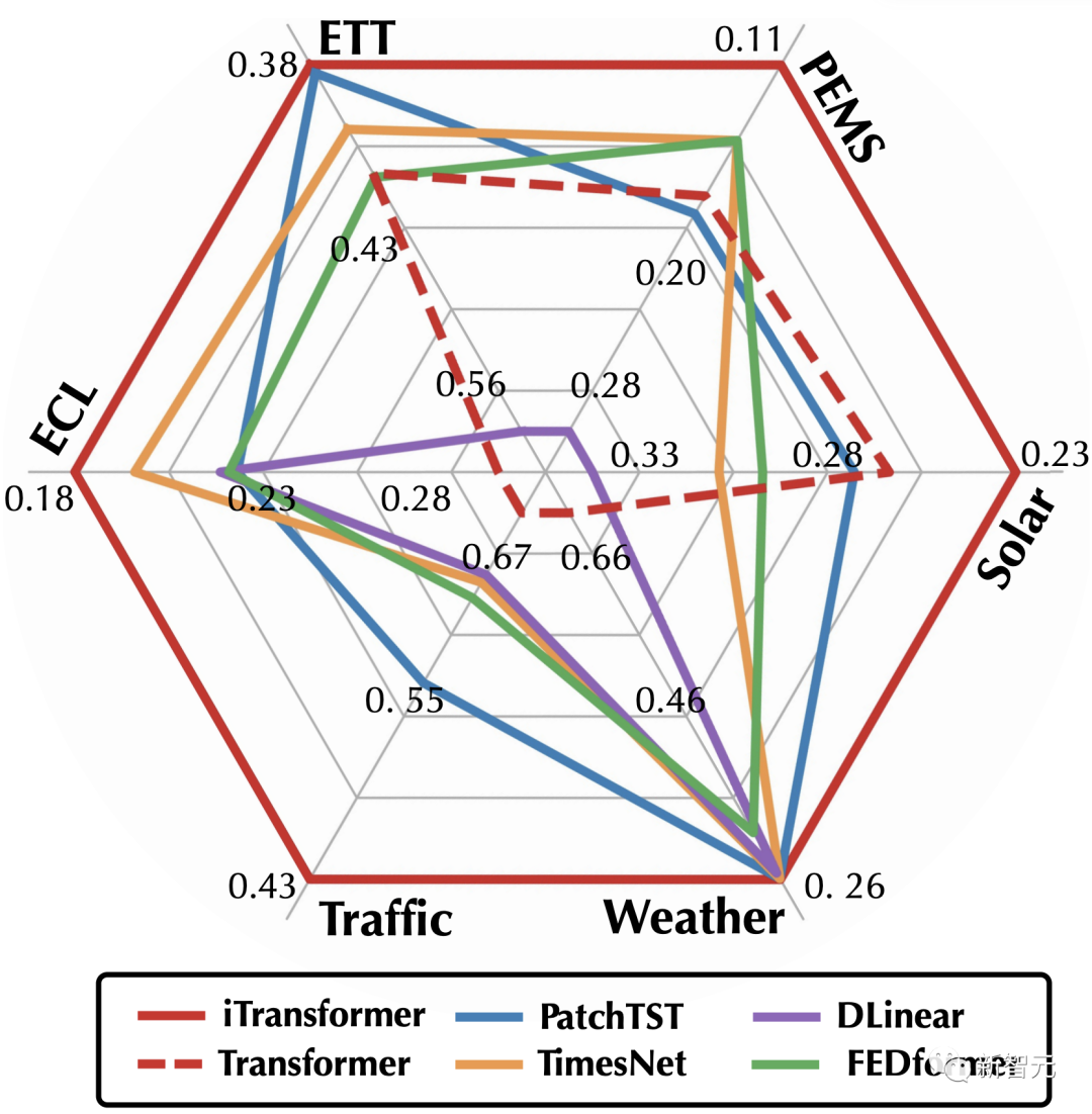 在iTransformer的加持下,Transformer完成了在时序预测任务上的全面反超。
