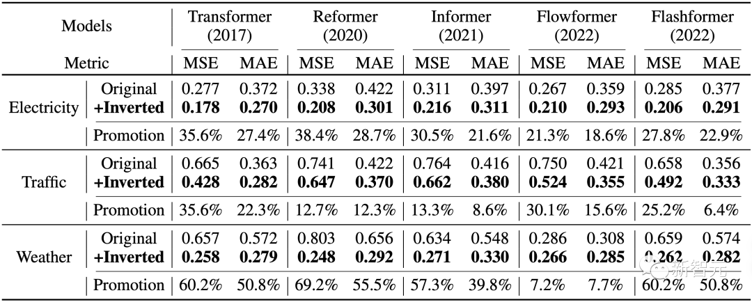 在取得最佳效果的同时,作者在Reformer、Informer、Flowformer、Flashformer等Transformer变体模型上进行了倒置前后的对比实验,证明了倒置是更加符合时序数据特点的结构框架。