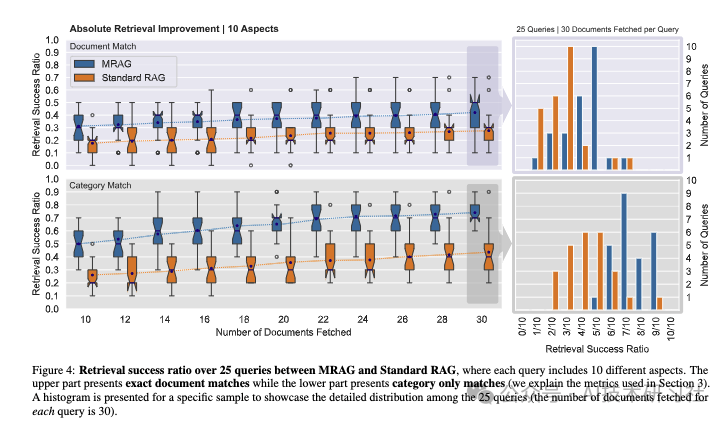 我们全面的评估方法,包括特定指标、合成数据集和真实世界的用例,证明了 MRAG 的有效性。结果表明,检索到的文档的相关性有了显著提高,与现代 RAG 基线相比,性能提高了 20%。这验证了 MRAG 有效处理复杂多方面查询的潜力。