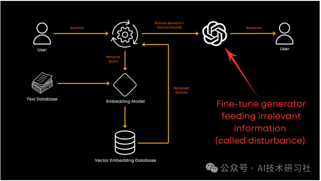 最后,您是否应该微调用于生成的 LLM?绝对!使用相关文档和随机文档的混合进行微调可以提高生成器处理不相关信息的能力。它使模型更加健壮,并有助于它给出更好的整体响应。论文中没有提供确切的比率,但结果很明确:微调是值得的!不过,这显然也取决于您的域。
