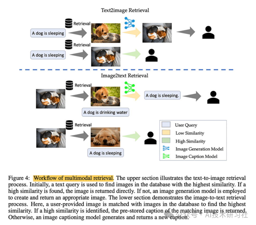 处理图像?实施多模式检索。对于文本到图像,在数据库中查询相似图像可以加快该过程。在图像到文本中,匹配相似的图像可检索准确的预存储字幕。这一切都与接地气有关——检索真实的、经过验证的信息。