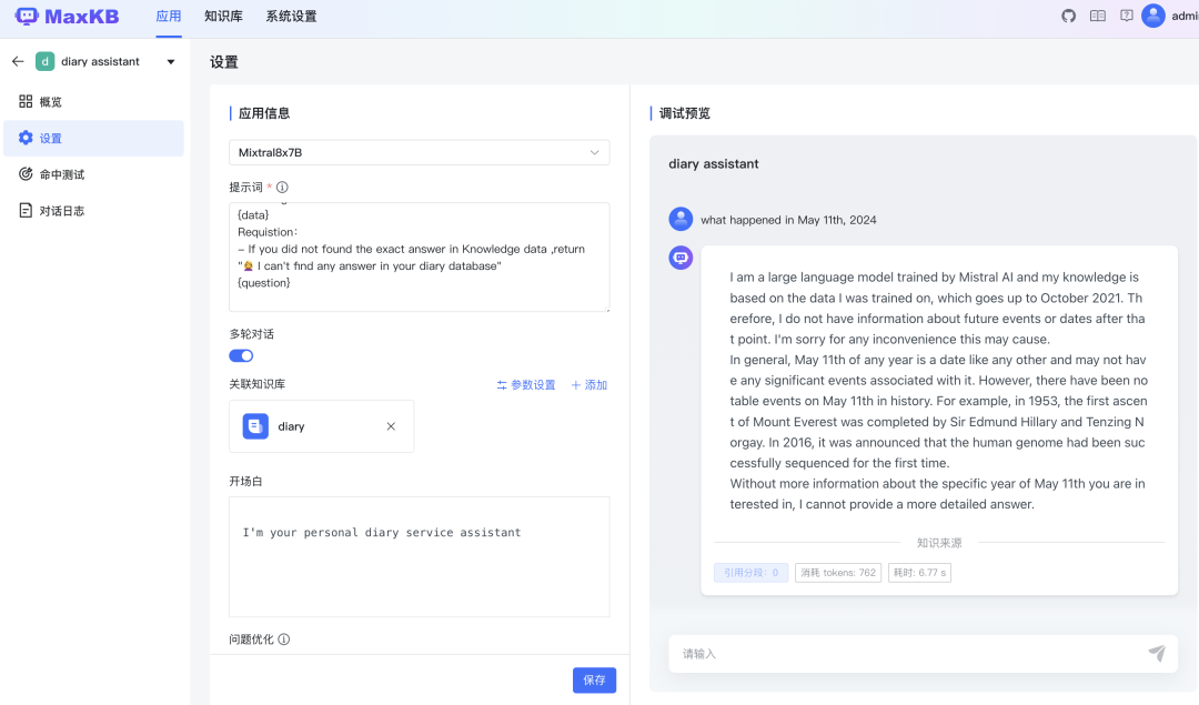 用 mixtral8x7b问答测试结果并不好,不能准确回答知识库的内容,也不按提示词回答