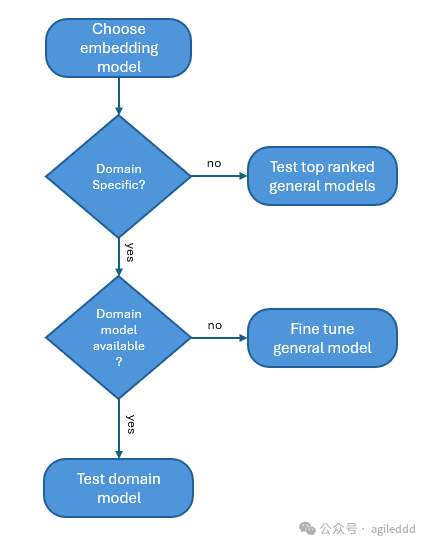 选择适合的 Embedding 模型需要综合考虑领域特性和任务需求。如下图所示,以下是基本的选择流程: