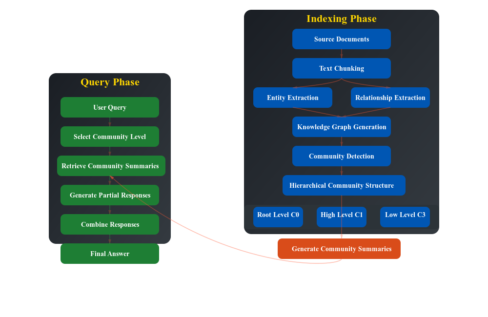 GraphRAG是传统RAG的增强版本,主要分为两个阶段: