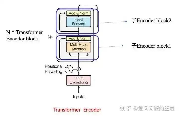 4.2 从结构角度,如图5所示,Transformer Encoder = Embedding + Positional Embedding + N*(子Encoder block1 + 子Encoder block2);