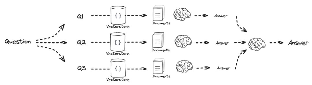 也就是 sub-question,是将复杂的问题拆解为多个独立的子问题,每个子问题可以单独处理。最终通过聚合子问题的答案来生成完整的回答。