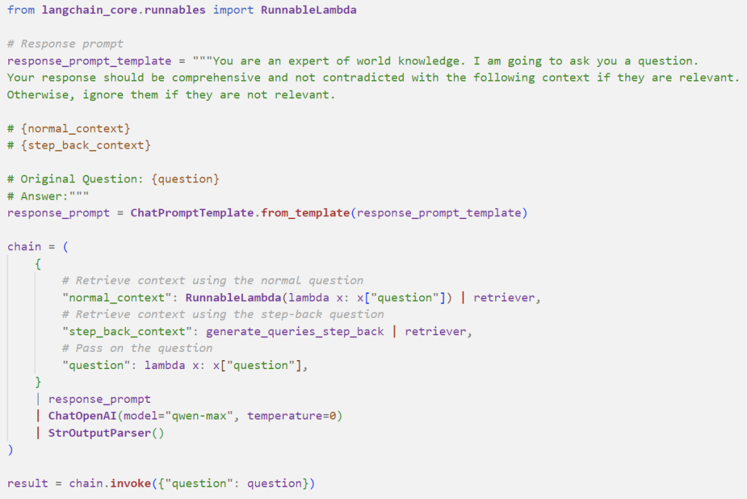 在检索和回答过程中,当系统意识到当前的问题太具体或难以直接回答时,退一步改问一个更广泛、更概括性的问题,从而获取更大的上下文信息。