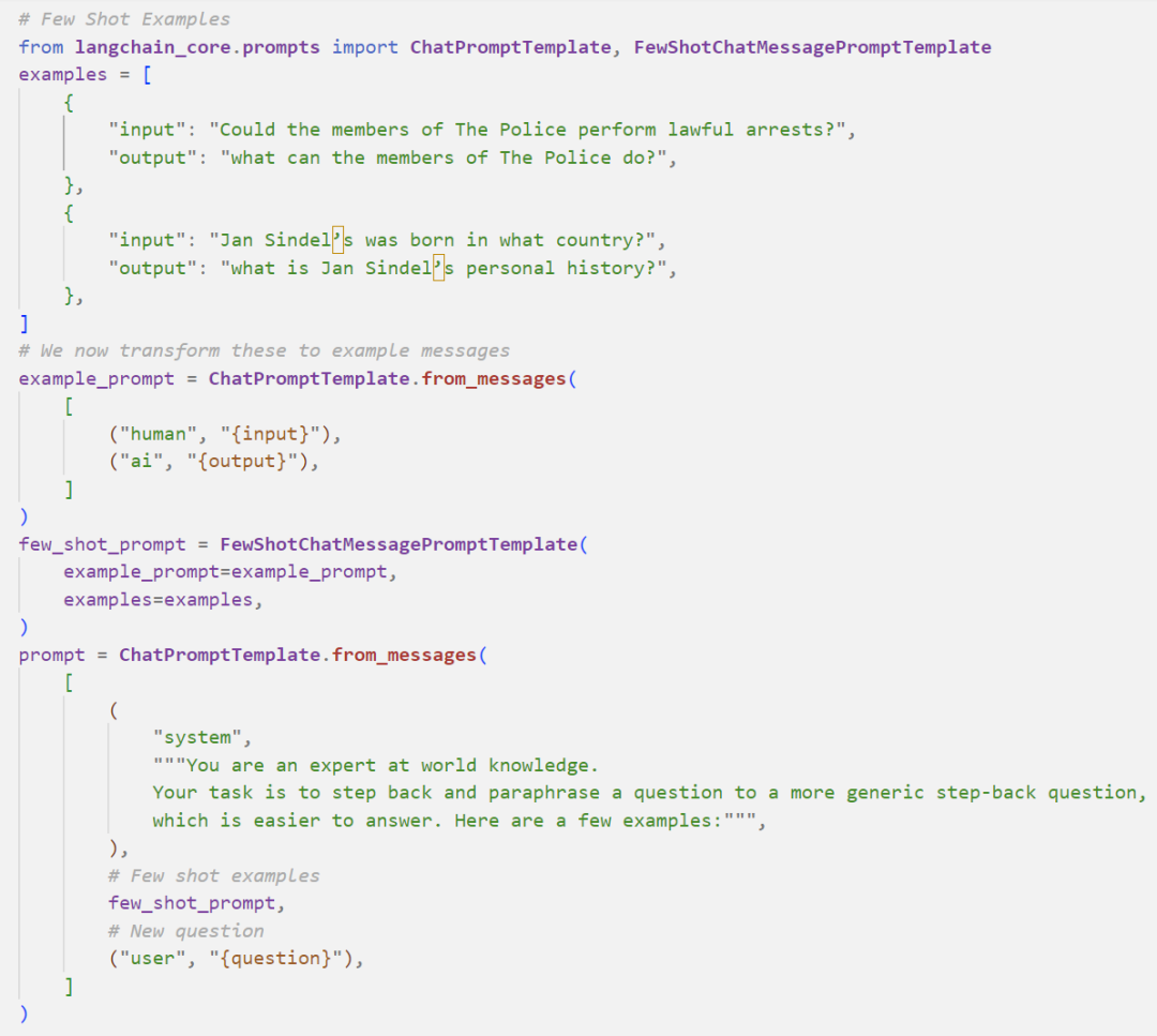 我们首先需要提供 few-shot example 给 LLM,使 LLM 知道如何修改原始问题: