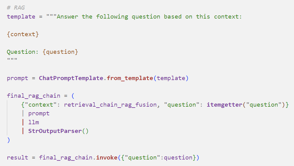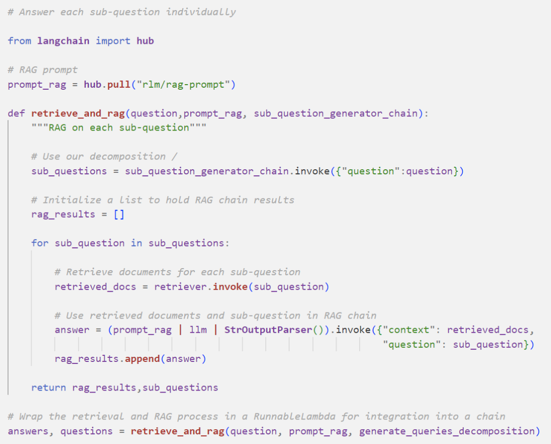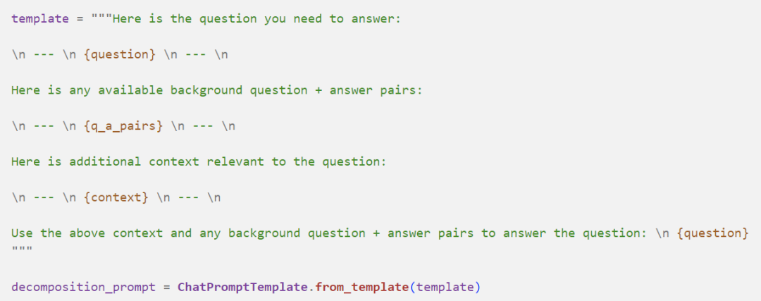 最后我们将上述拆分问题的链和检索链串起来形成最终的 RAG 管道,我们还引入了新的 Prompt: