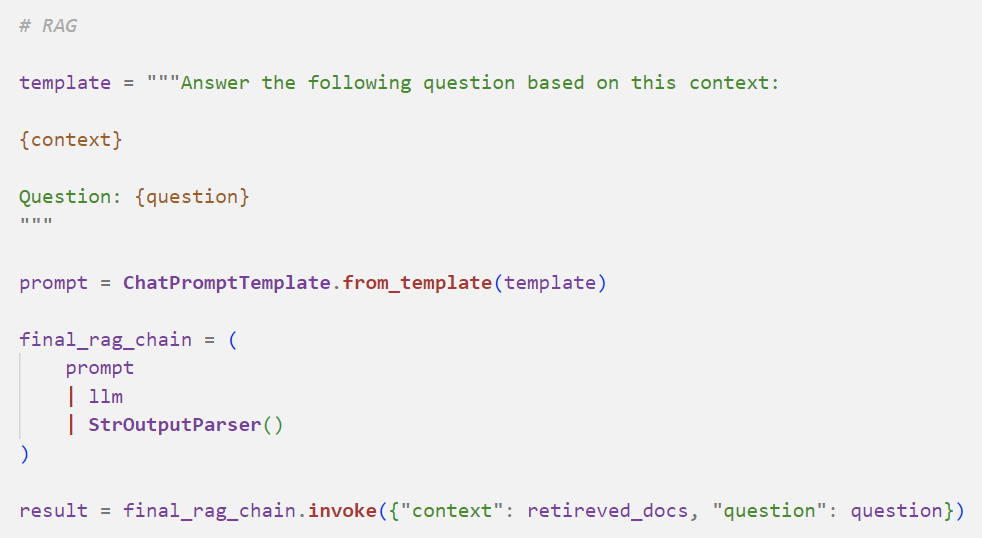 - 将检索到的文档和原始问题结合,通过生成模型生成最终的回答。