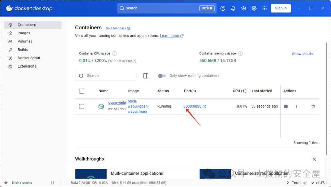安装完成后,点击docker中对应的网址,就可以访问了: