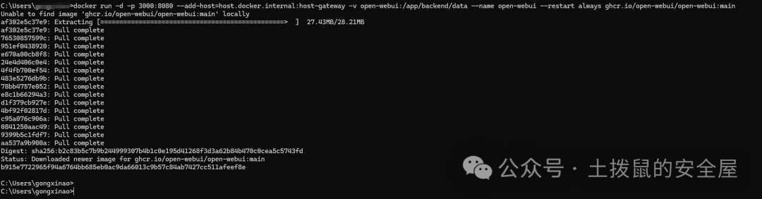 docker run -d -p 3000:8080 --add-host=host.docker.internal:host-gateway -v open-webui:/app/backend/data --name open-webui --restart always ghcr.io/open-webui/open-webui:main