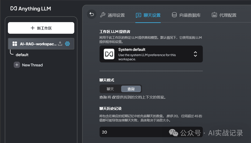 再打开AI-RAG-workspace旁边的小扳手,进入设置页面