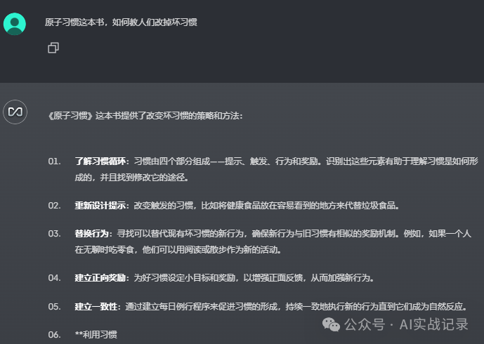 完成以上步骤之后,我们再次去提问,结果有了新的变化,当然还是不够精准,回复了很多废话。