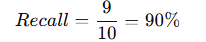数据库中有 10 条相关文档,检索系统返回 9 条相关文档和 1 条不相关文档。