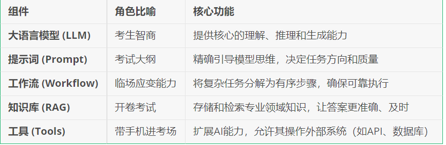 大语言模型 (LLM)是基础计算能力,日趋标准化;工具 (Tools)是能力扩展接口,通过MCP等协议日趋标准化;知识库 (RAG)决定知识深度与专业性,减少模型“幻觉”,是企业知识的载体;工作流 (Workflow)决定处理效率与逻辑,是复杂任务自动化的骨架;提示词 (Prompt)直接决定输出精度,需要深度结合业务场景进行设计。设计精准的提示词、编排可靠的工作流,以及构建和维护高质量的知识库,是设计AI Agent的三大痛点。