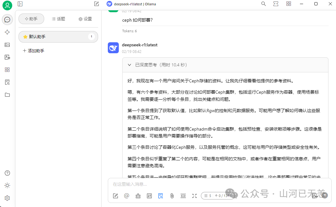 模型下载成功就可以用了,默认会自动下载 DeepSeek-R1-Distill-Qwen-7B 模型
