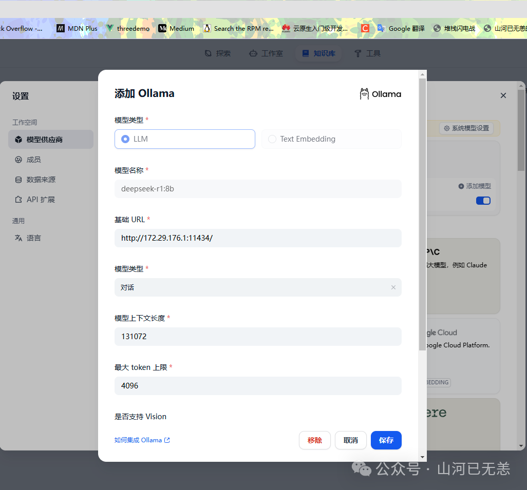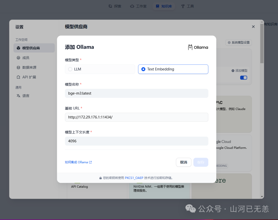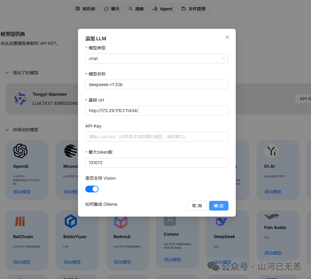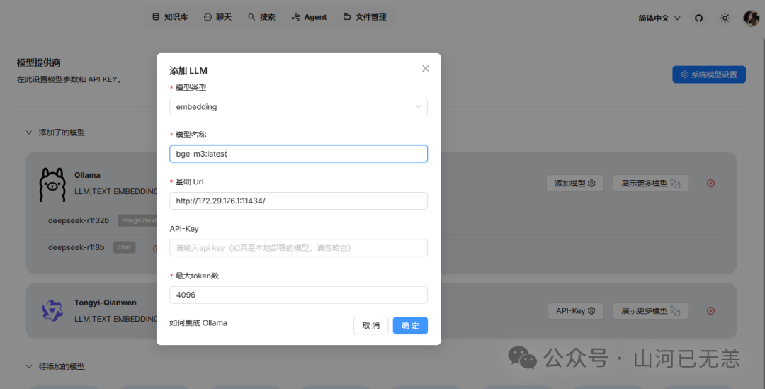 需要先配置基础模型,需要注意这里的地址不能写 127.0.0.1