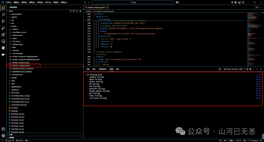 这里需要说明一下,有些 docker-compose 维护不及时,可能部署有问题,所以我们用 readme 推荐的方式