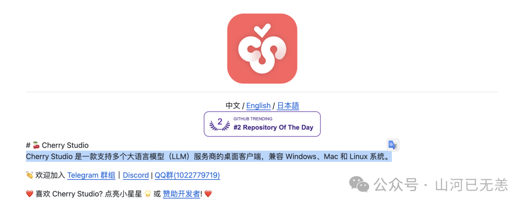 项目地址: https://github.com/CherryHQ/cherry-studio