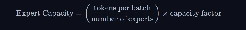 容量因子决定每个专家在每个批次中可接受的最大token数量(通常容量 = (每批次token数 / 专家数) * 容量因子)。较低的因子→更少的额外内存和更少的通信,但token溢出的可能性更大。较高的因子→更多缓冲(更少丢弃token)但更多通信和内存。Switch的作者发现小容量因子(1-1.25)通常表现良好。根据你的批次大小和网络调整此值。