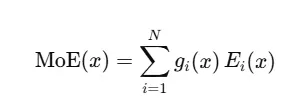 其中 是第i个专家,是门控权重(通常是稀疏的,有很多零)。在稀疏MoE中,我们只计算非零的。实际效果是:参数数量随N增长,但每个token的计算量随活跃专家数量(k)增长,而不是随N增长。