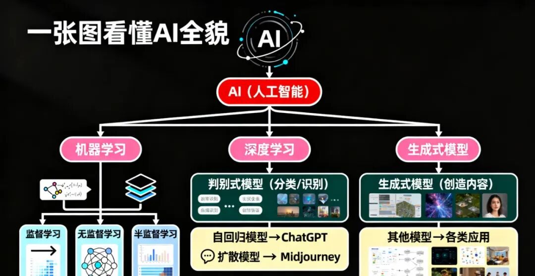 今天,我用一张图、三个层次、五个要点,带你看透AI的全貌。读完这篇文章,你不仅知道怎么用AI,更能理解它为什么这么智能。