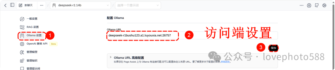 1、Page Assist访问端设置:将复制的地址粘贴在Ollama 设置——Ollama URL 中保存,重启浏览器。