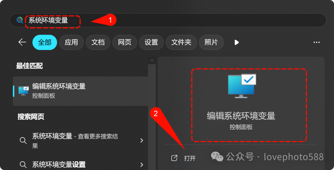 1、在电脑设置中搜索找到“编辑系统环境变量”并打开 编辑系统环境变量。