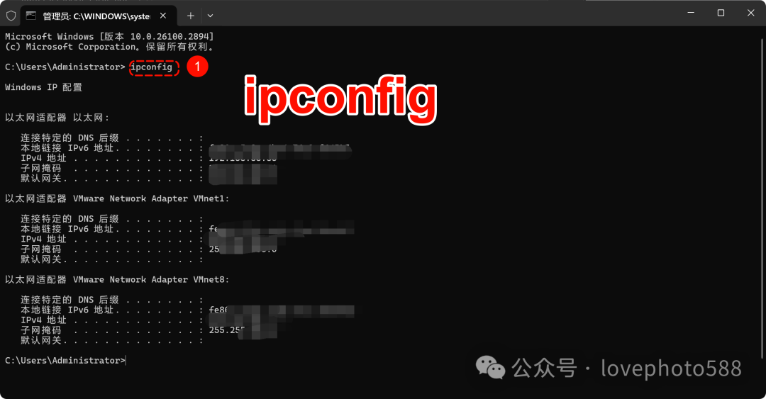 注意:主机ip 地址查询,在CMD中 直接输入: ipconfig 回车即可显示。