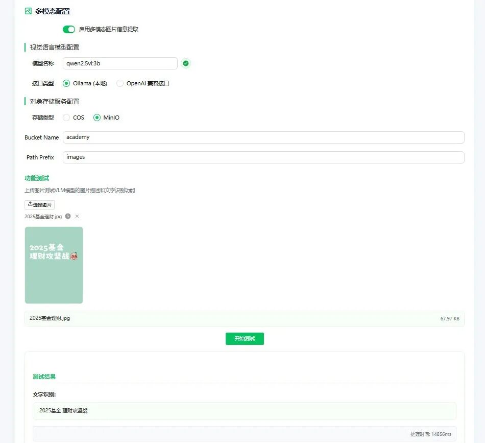 你可以选择是否启用多模态图片信息提取功能,此功能主要用于处理输入信息中包含图片的情况。