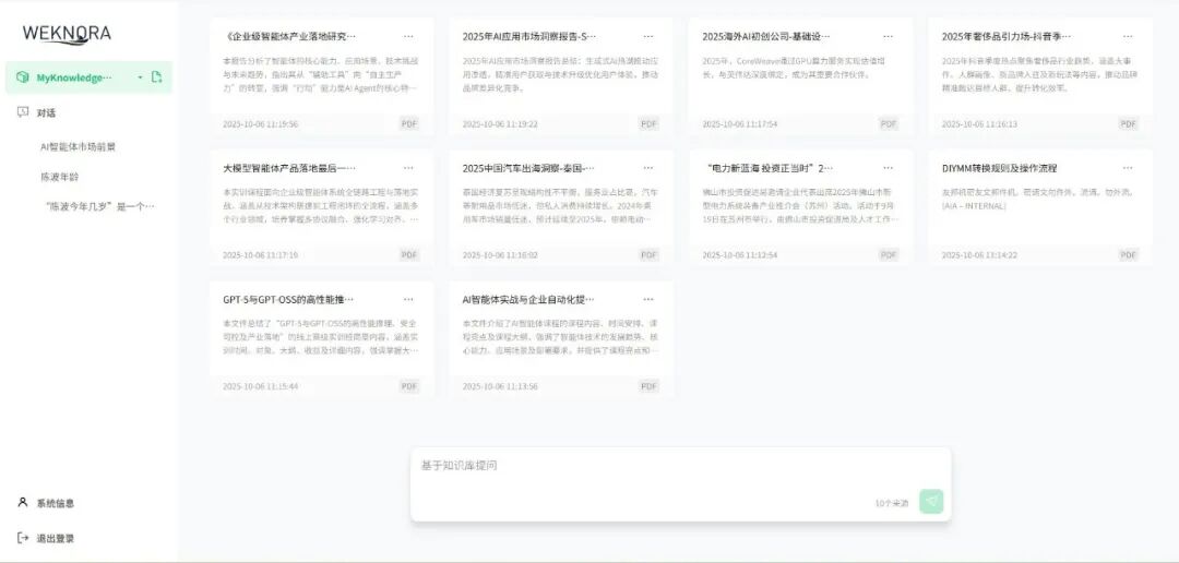 完成全部配置后,我尝试将几篇 AI 相关的技术文档上传到知识库中,随后基于这些文档提出了几个简单的问题。系统运行顺利,能够快速返回基于知识库内容的准确回答,初步验证了整个 RAG 流程的成功打通。