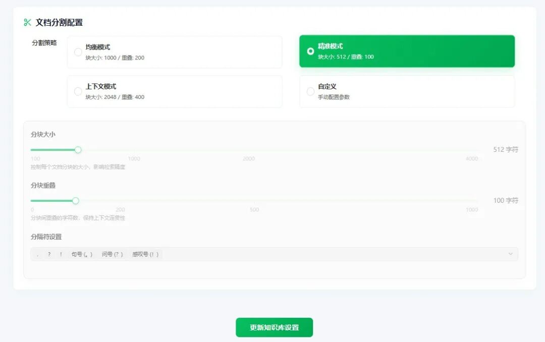 在此步骤中,你可以根据需求设置文档的分割策略与规则。