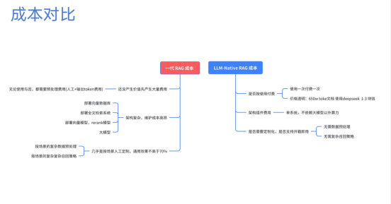 第一代RAG 最大的问题就出在召回方案缺乏语义理解,受限于 embeding 对文本长度的支持,还长期受限于文本碎片化的困扰。后续RAG公司没有从根本上去解决这个问题,而是不断的在其上打补丁比如,加入实体图搜索,在数据预处理上进行大量场景定制,在召回策略上也要进行场景定制。一代RAG天花板太低,实际上效果很难再提升,唯一的出入就是定制,但这样很难控制成本。
