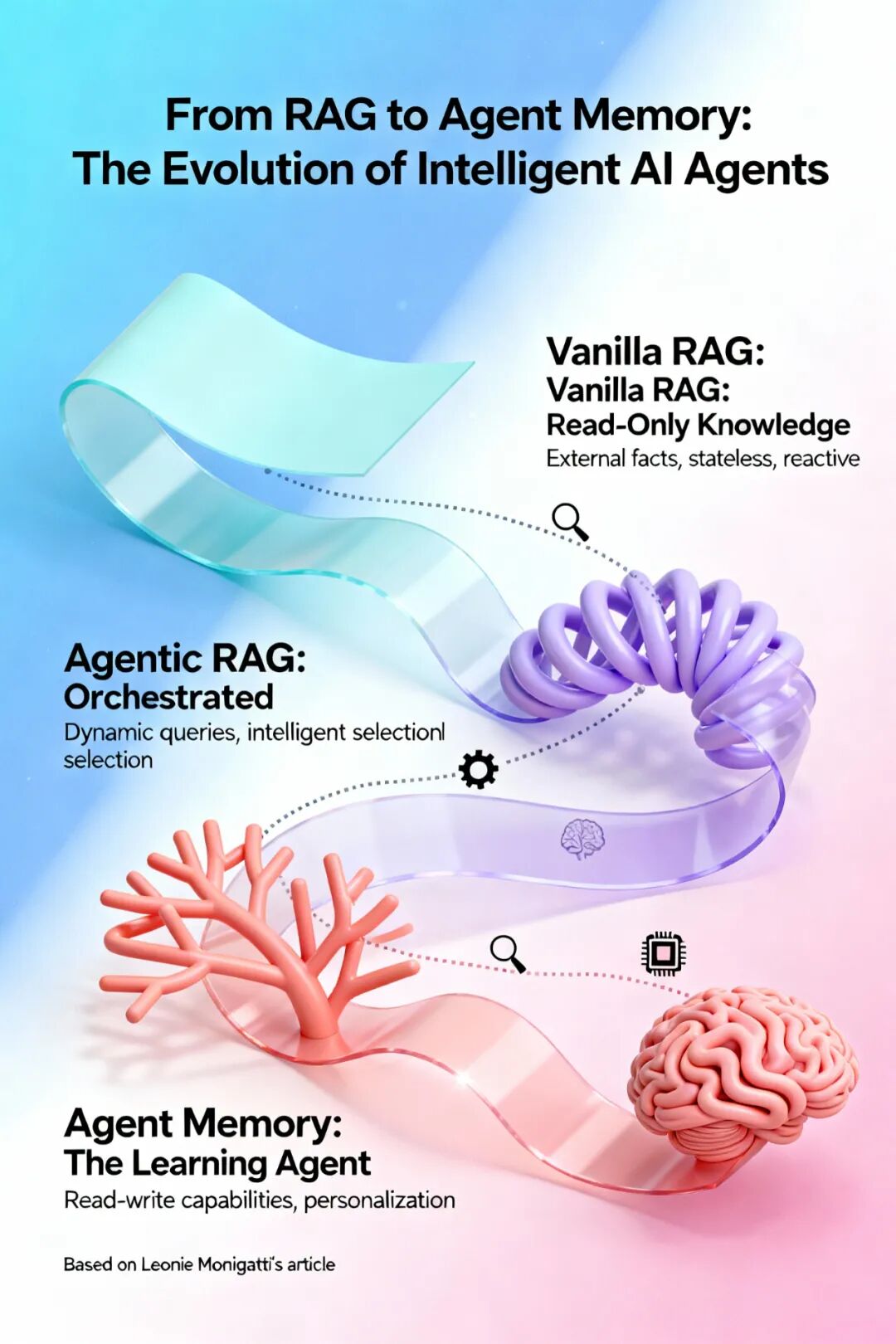 这篇文章将带你走过一条清晰的演进路径:从传统的 RAG,到更强的 Agentic RAG,再到具备持久“记忆”的智能体(Agent Memory)。你将理解为什么我们需要从纯检索走向可规划、可反思的代理式检索,并最终引入可写可读的长期记忆来沉淀知识、偏好与技能。