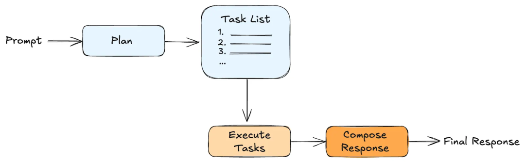 这种模式会先思考想好自己的计划,然后逐步完成,相当于开始时候就给自己制定好需要完成的子目标,然后一个接一个开始干活。