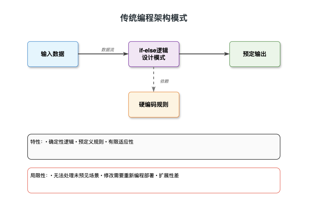 - 传统的软件需要我们特定的编码 if else 来处理现实世界中各种复杂的场景(需要预编写成各种业务代码),这种情况对程序员的需求和要求是巨大的。