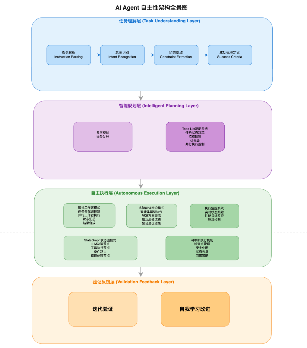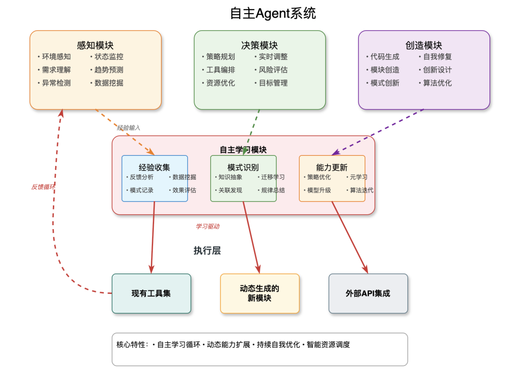 具体而言自主性是实时动态能力的涌现,这体现在上面四个要素动态的协同互动,不断递进,产生了类似生命的"自主性"特征。通俗来说就是基于模型对任务的理解,自己拆解,设计流程,并逐步完成,且不断迭代过程。