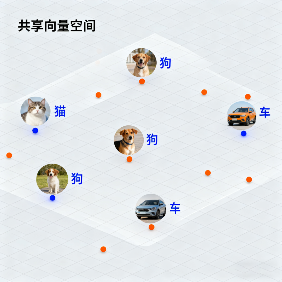 - 以文搜图:你可以用"一只在沙发上睡觉的猫"这样的描述,直接搜索到相关图片,因为你的查询文本和图片的向量在同一个空间里。