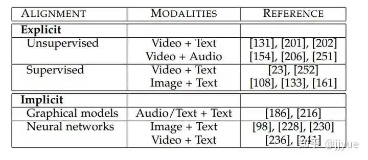 对齐广泛应用于多模态任务中,具体的应用方式包括显式对齐和隐式对齐。