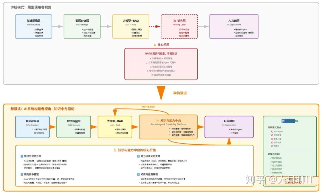 本文将深入剖析传统AI应用架构的缺陷,提出"知识与能力中台"的新范式,帮助AI从业者实现从"模型使用者"到"系统构建者"的关键跨越。