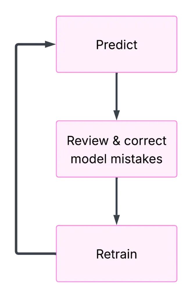 训练创建模型的微调版本,我回到步骤1对新的几百个样本进行预测。我重复这个预测、纠正和训练的循环,直到我注意到模型性能收敛。
